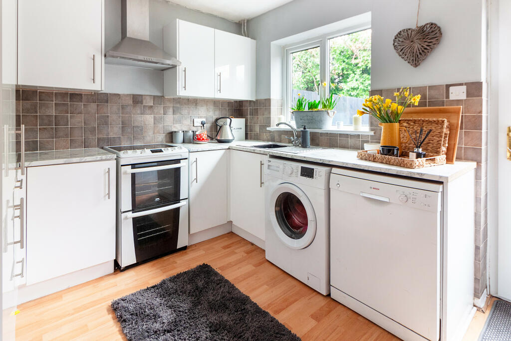 a well presented spacious terraced house, with two good sized bedrooms, a large lounge & dining space, good size kitchen. A family bathroom, a rear low maintenance private garden with patio area and shed. To the front is a private driveway and an extra allocated parking space.