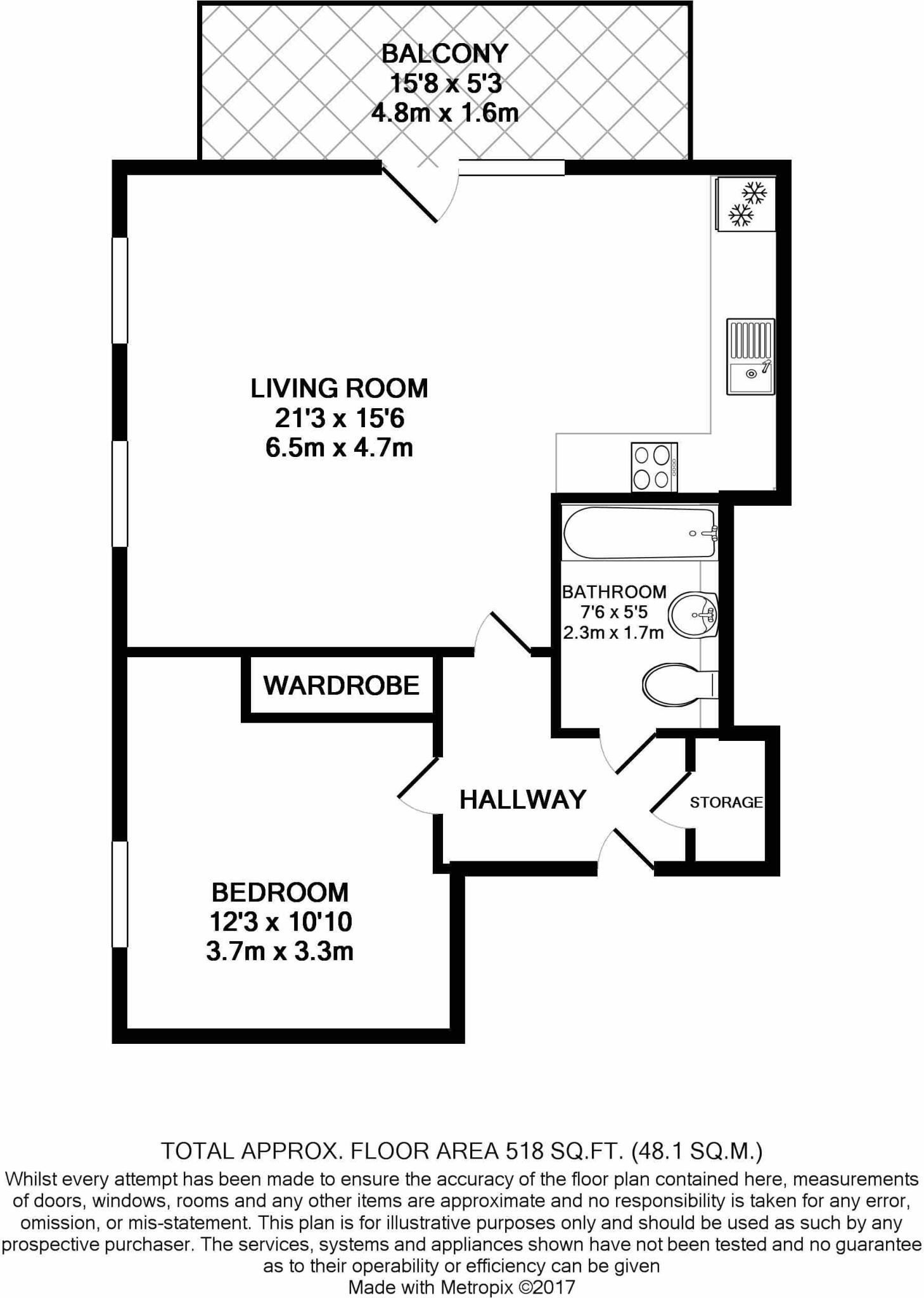 This one bedroom apartment is located in the Royal Gateway development in Canning Town, Newham. The apartment itself appears to be in excellent condition, with modern fixtures and fittings. While the listing does not specify a garden, the development includes communal green spaces, which are visible in the provided images. The property is conveniently located near several schools and transportation options, including West Ham underground station (2.15km). Considering the average price per square foot in the area (£547) and the listed price of £375,000 for 518 sqft, this property seems reasonably priced, especially when compared to similar properties in the area that are listed at significantly higher prices. However, it is important to note that the lack of private outdoor space may be a drawback for some buyers.