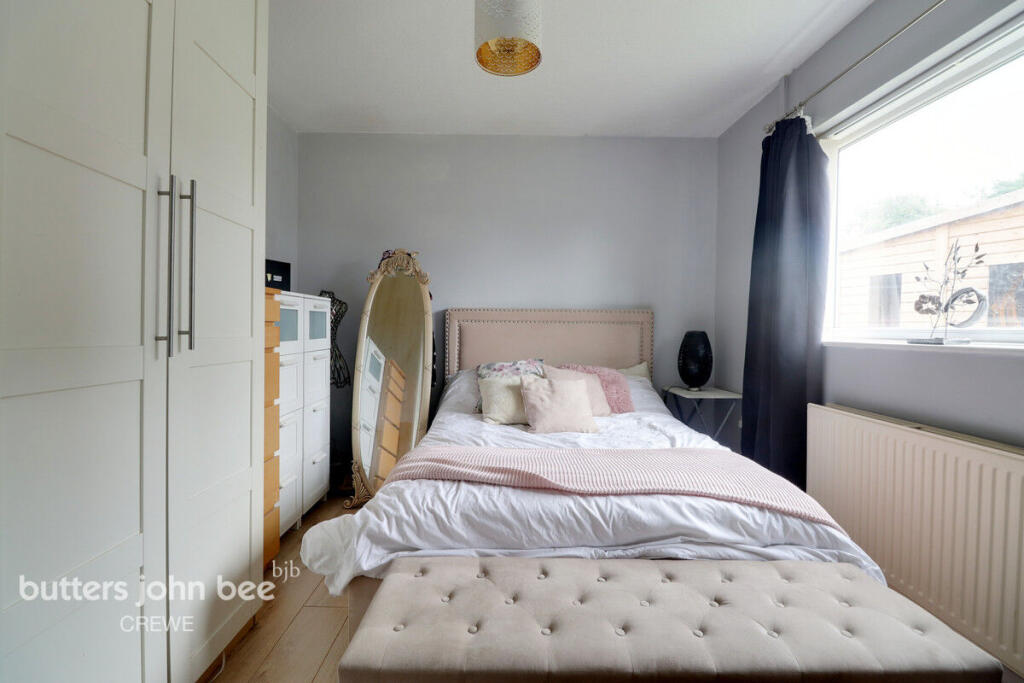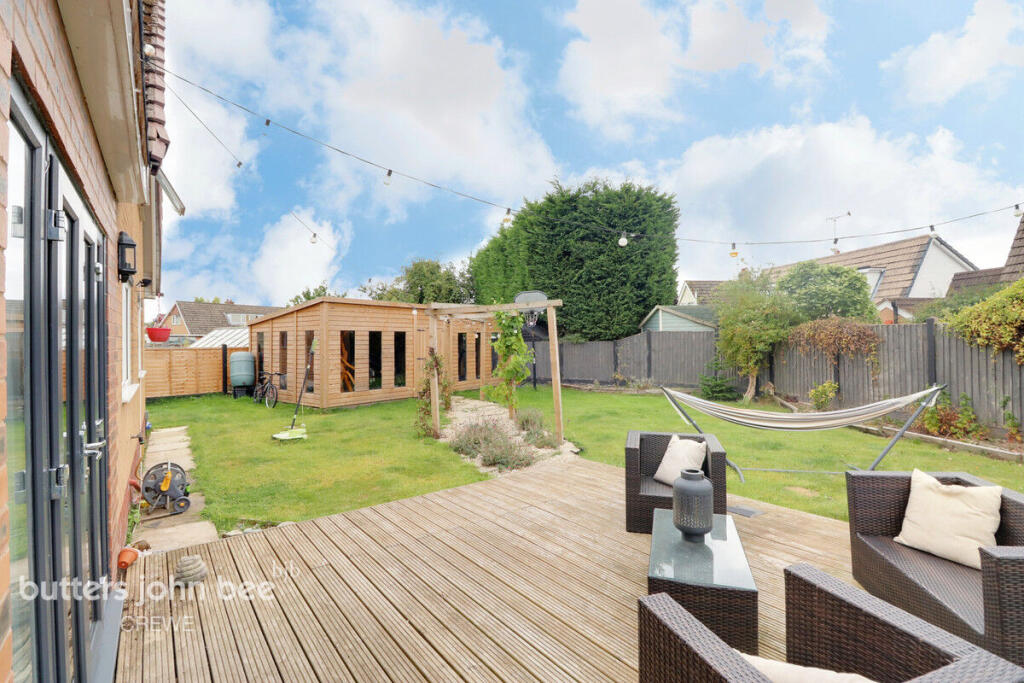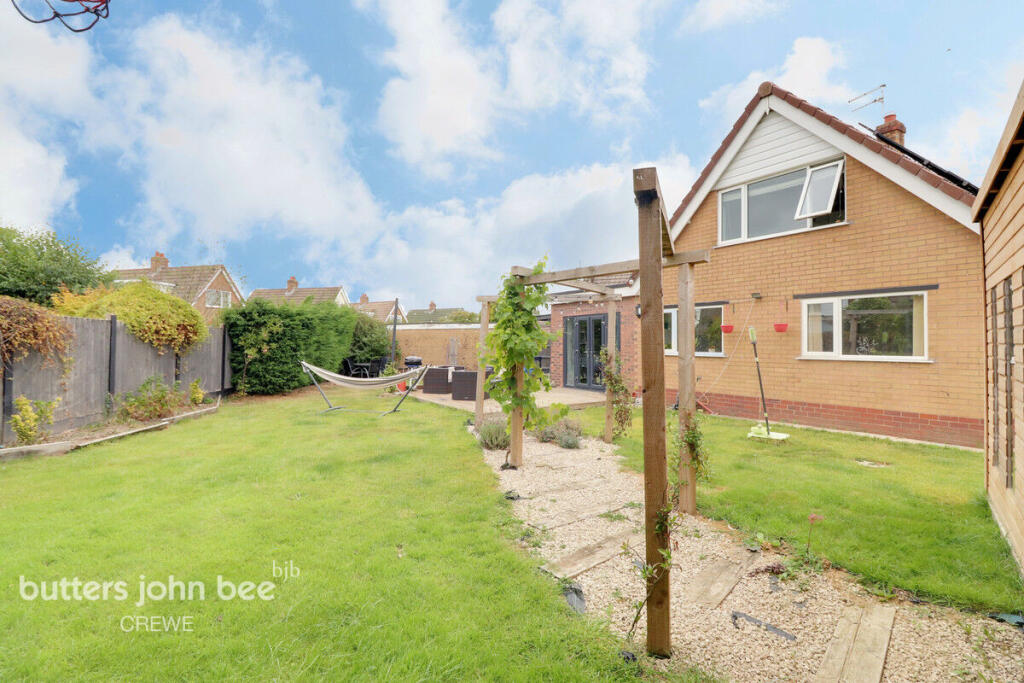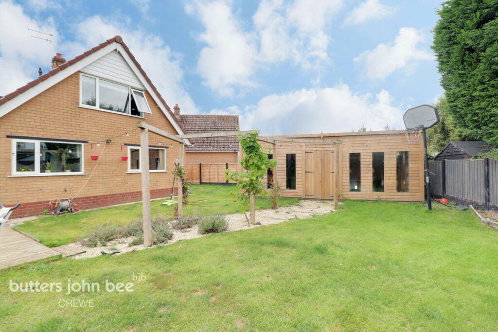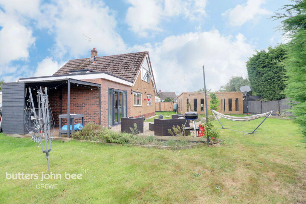 This is a detached bungalow in Wistaston, Crewe, featuring three bedrooms and one bathroom. The property benefits from a modern kitchen and a well-maintained interior. A standout feature is the large garden, which includes a patio area and a substantial shed currently utilized as a gym. The location is convenient, with proximity to schools and transport links, making it suitable for families. The asking price of £240,000 appears competitive within the local market, considering the property’s size, condition, and desirable features.