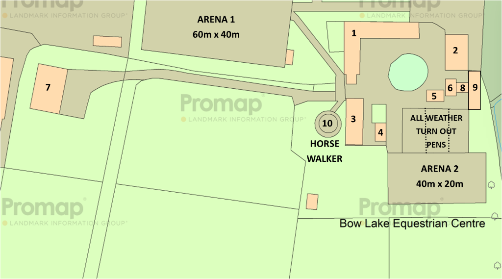 Approx. 18.70 ac. Equestrian Centre currently Livery with facilities for competition horses. Accommodation 2 Double Beds & Function Room (3,104ft²). 26 Stables, 2 Arenas, Youngstock Building, Horse Walker, 3 turnout Pens, Parking, Pasture land for grazing & hay/haylage production.