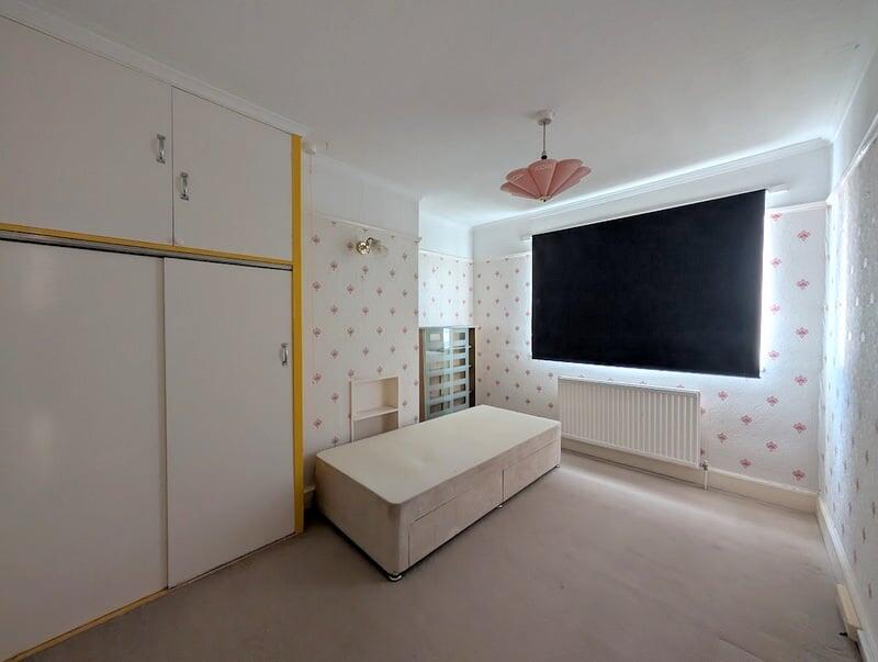 This is a three-bedroom terraced house in Feltham North. The property requires renovation, particularly in the kitchen and bathroom. It benefits from a garden and a garage. The location is convenient, with proximity to schools and transportation links. The asking price is slightly below the average for the area, reflecting the need for modernisation.