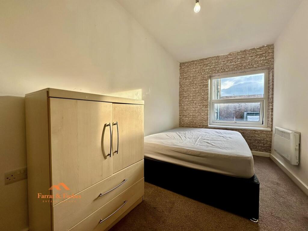 First-floor apartment located in the heart of Burnley town centre. Close to coffee shops, supermarkets, and restaurants. The property comprises an entrance hallway, open plan lounge/kitchen with a range of matching wall and base units in white and a freestanding electric cooker, one good...