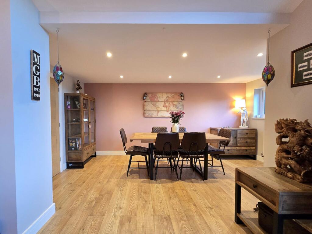 A contemporary 4 bedroom modern detached house, extended to provide spacious accommodation including a superb open plan kitchen/dining/family room, separate lounge, master en-suite & stylish bathroom together with enclosed level rear garden, garage & driveway.
