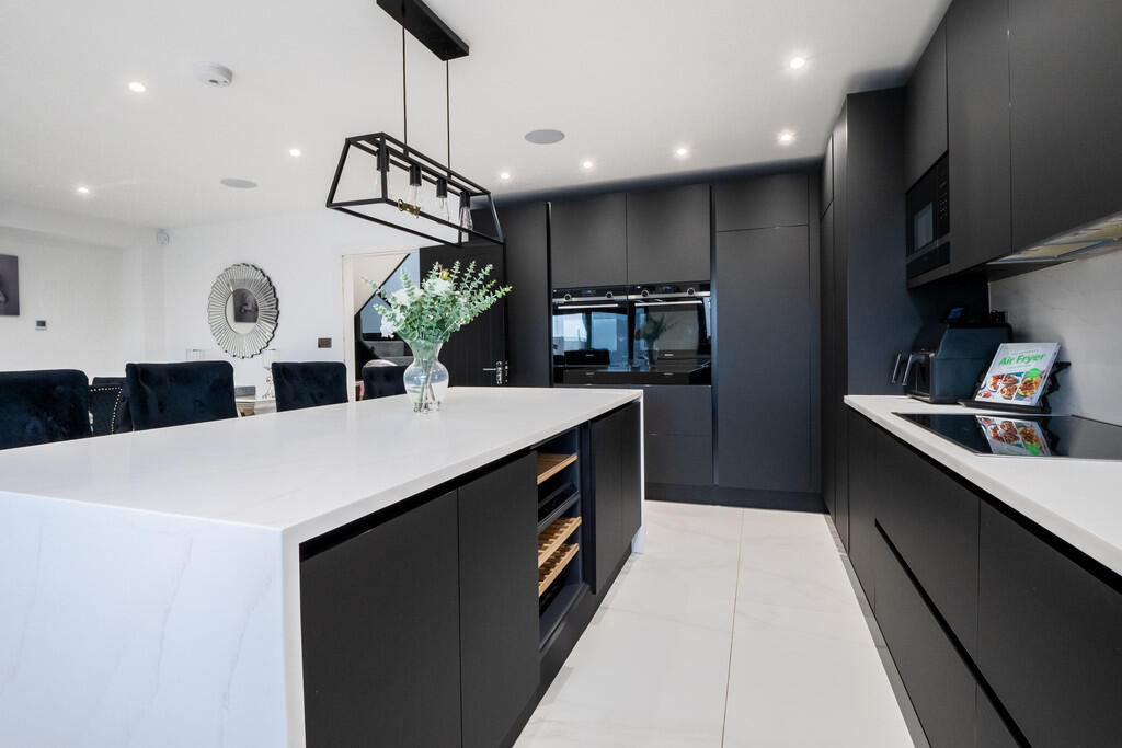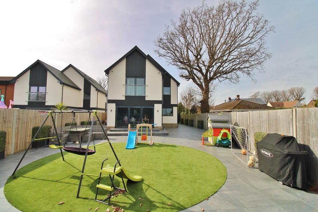 The property is situated in Stubbington Lane, Hill Head, Fareham, Hampshire. The area benefits from outstandingly rated primary schools within a kilometre radius, including Crofton Hammond Infant and Junior Schools, and Crofton Anne Dale Infant and Junior Schools. Baycroft School, also within reasonable proximity, receives a ‘Good’ Ofsted rating. The location is also convenient to Fareham Train Station, approximately 4.99 km away, providing access to the South Western Railway network. This suggests a desirable location for families with young children, valuing good schooling and convenient transport links. Based on the provided images, the property appears to be in excellent condition. The interior is modern, with high-quality finishes and fixtures throughout, suggesting recent construction or a very recent, high-standard refurbishment. There is no visible evidence of wear and tear or the need for repairs or renovation. The property includes a substantial, well-maintained rear garden, featuring artificial turf and a patio area. The garden also includes a play area for children, adding to its family-friendly appeal. The presence of a garden is a significant positive attribute for many buyers. The list price is £995,000. While the average house price in the area is significantly lower at £472,305, and the average price per sqft is £423, this property is substantially larger than average (1,850 sqft vs 1,116 sqft) and appears to be a newly built or extensively refurbished detached property. Therefore, the price, while high, might be considered reasonable given the property’s superior condition, size, and desirable location, though further comparable sales data would be beneficial to confirm this. The lack of plot size information in the listing is a notable omission.