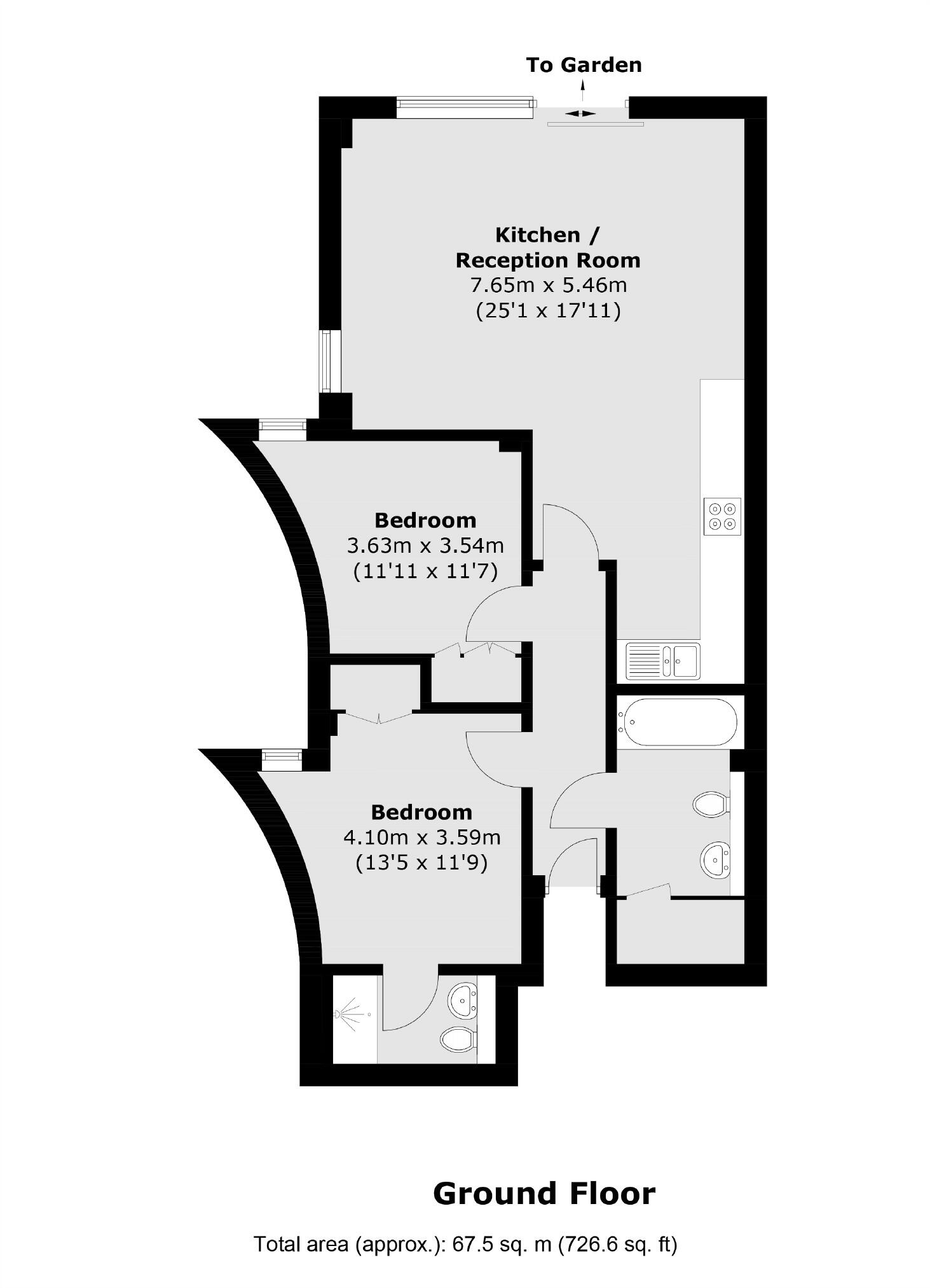 A two double bedroom, two bathroom ground floor new build apartment. The property has a large private garden, with access from the open reception room, via sliding doors.