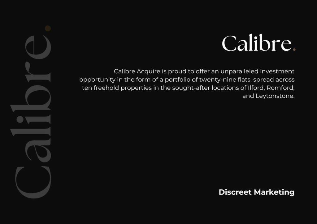 Calibre Acquire is proud to offer an unparalleled investment opportunity in the form of a portfolio of twenty-nine flats, spread across ten freehold properties in the sought-after locations of Ilford, Romford, and Leytonstone. This collection of properties stands as a testament to stability and l...