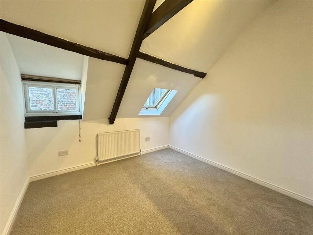 This second floor two bedroom apartment offers a bright open-plan layout with character features including exposed beams and a decorative fireplace. Positioned just off Thirsk Market Square, it provides well-proportioned rooms, modern kitchen and shower facilities, and convenient access to town.