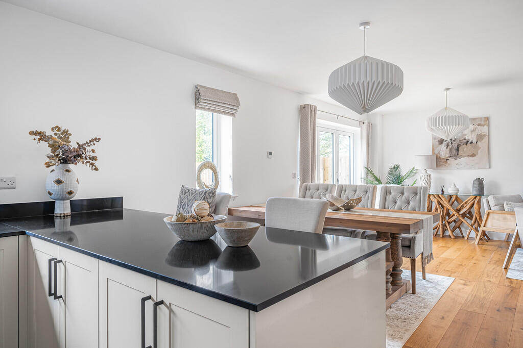 A spacious four bedroom detached family home comprising a separate home office, open plan living, dining and kitchen area with silestone worktops, master en suite, enclosed rear garden and off road parking for two cars within the village of Kingskerswell.