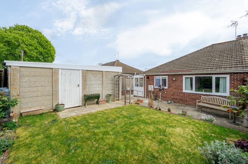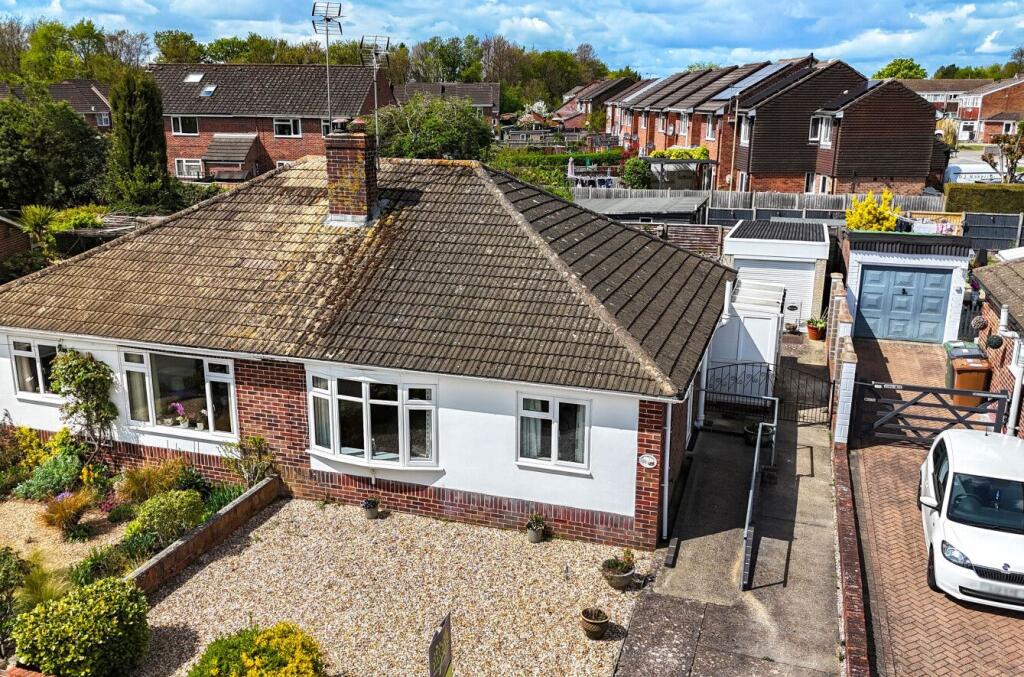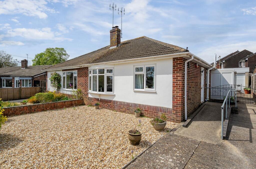 This semi-detached bungalow is located in Andover, Hampshire, in the South East district of England. The property is situated on The Crescent and benefits from being within proximity to several schools including Portway Infant School (Outstanding Ofsted rating), Portway Junior School (Good Ofsted rating) and John Hanson Community School (Good Ofsted rating), all within a 1km radius. Andover railway station is approximately 2 km away, offering convenient access to other towns and cities. The bungalow itself is a brick-built property with a sizeable garden and a detached garage. The interior appears well-maintained, though the style is somewhat dated. The kitchen features modern appliances but the overall aesthetic suggests a traditional style with some modernisation. The property is listed at £335,000, slightly higher than the average price of £333,800 for the area, but considering its size (403 sqft) and the inclusion of a garden and garage, the price may be considered reasonable. The average price per sqft in the area is £291, but this figure is likely skewed by larger properties. More comparable properties in the area are needed to gauge the price accuracy.