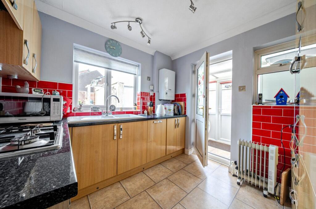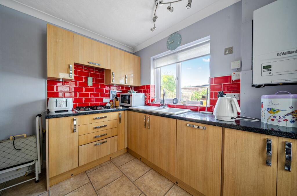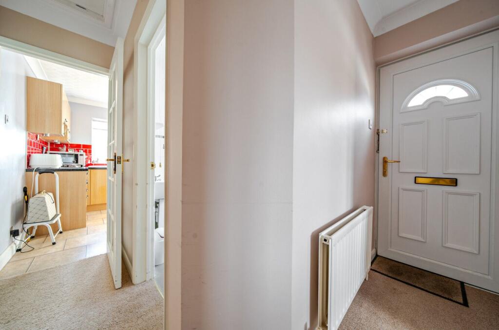 This ground floor home offers accommodation arranged across a single level, comprising two bedrooms, a reception room, a kitchen, and a bathroom. The layout begins with an entrance hallway that leads into the main living areas. The kitchen benefits from both wall-hung and base-level storage an...