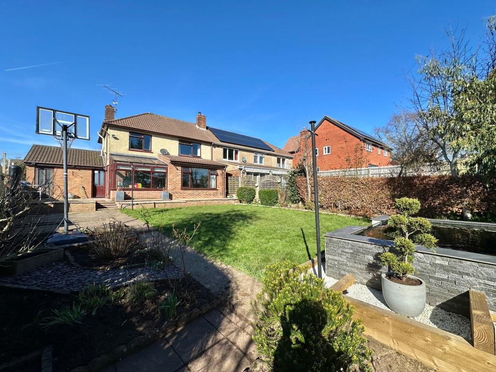 A light and spacious, beautifully presented three bedroom semi-detached property offering open plan living space downstairs, large driveway, well-maintained rear gardens with bespoke koi pond, and garage, situated in a convenient town location with wonderful rear views of the Severn Vale.