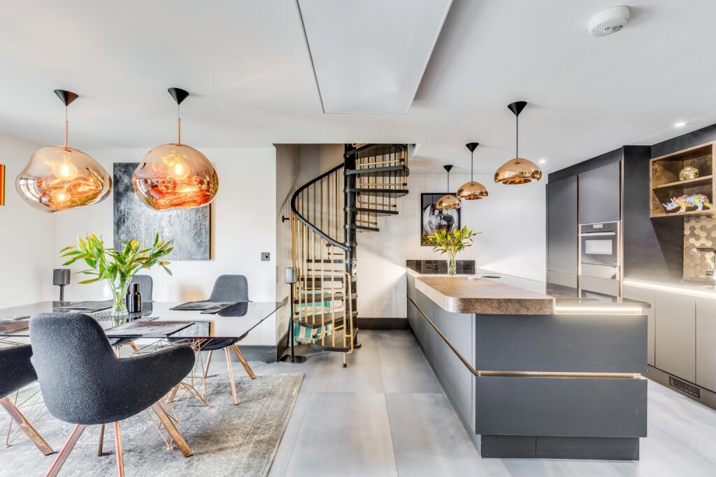 The property is a three-bedroom, two-bathroom apartment located in Hitchin, a town in North Hertfordshire. Hitchin benefits from its proximity to London, with Hitchin train station offering regular services to London Kings Cross. The area has a good selection of schools, including several highly-rated options within a short distance of the property. The images show a modern, well-presented apartment with a contemporary design. The kitchen is particularly striking, featuring high-end appliances and fixtures. The property also includes a balcony overlooking Bancroft Park, offering pleasant views and outdoor space. While the provided data does not specify the exact plot size or square footage of the apartment, the list price of £525,000 is slightly higher than the average house price in the area (£425,581). However, considering the modern condition of the property, its desirable location near Bancroft Park and the train station, and the high-quality finishes shown in the images, the price may be justified. More information regarding the square footage would allow for a more precise price per square foot comparison to support this assessment.