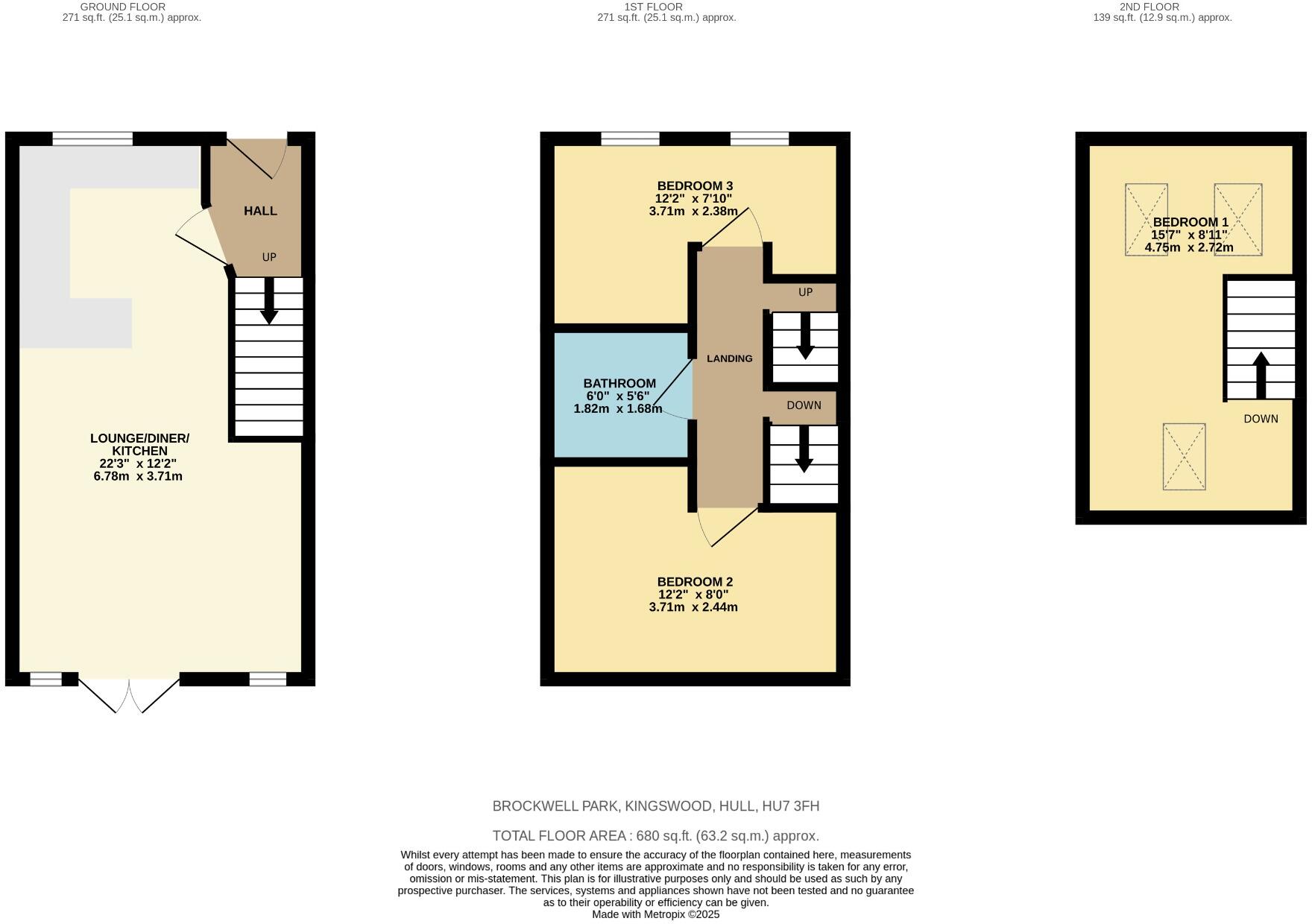 The property is a three-bedroom terraced house located in Kingswood, Hull, with a list price of £160,000. The property has 680.28 sqft of living space and benefits from a small enclosed rear garden.