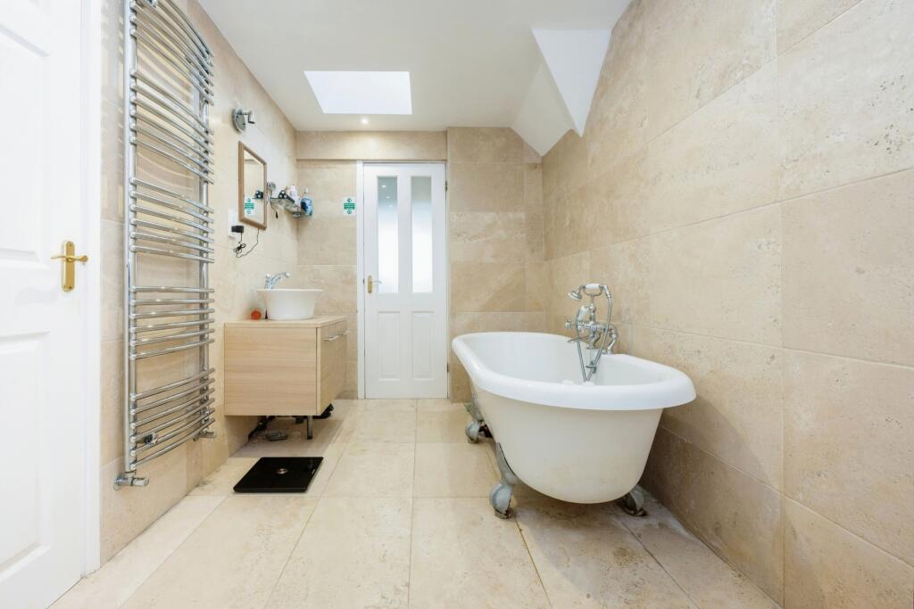 This impressive 6 bedroom detached house is located in a sought-after area of Broxbourne, backing onto the New River. The property boasts spacious family living with multiple reception rooms, a kitchen/diner, 3 bathrooms, and a large 4-car driveway with a garage. The proximity to Broxbourne Train Station and local amenities is a significant advantage. While the listing does not provide square footage, comparable properties in the area suggest a price that aligns with market values. The property appears to be in good condition based on the provided photos, and the large garden is a desirable feature.