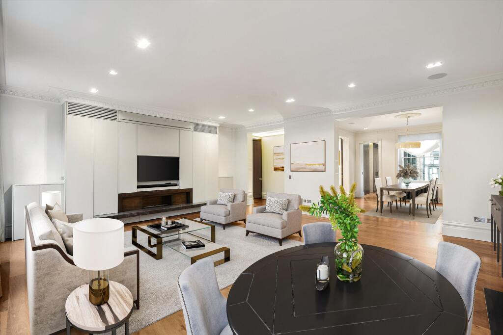 A three bedroom apartment for sale in a desirable location. This elegant and exceptionally spacious three bedroom apartment occupies the second floor of a distinguished building on Ennismore Gardens, offering views across the tranquil garden square. The home opens into a grand entrance hall, se...