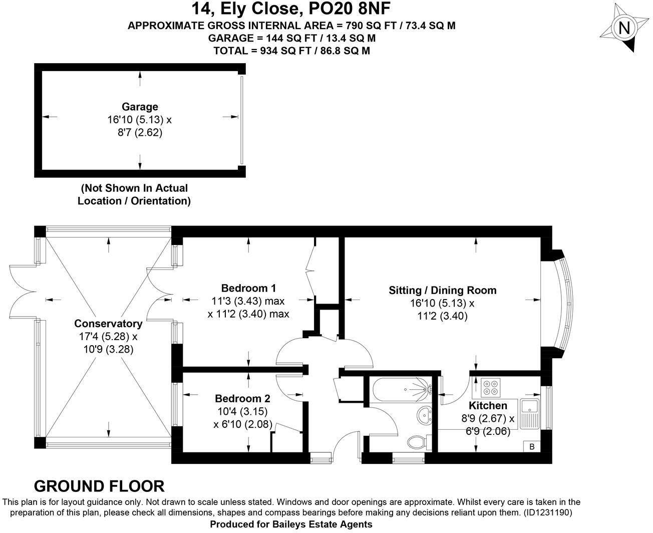 This semi-detached bungalow is located in Ely Close, West Wittering, Chichester. The property features two bedrooms and two bathrooms within its 934 sqft layout.