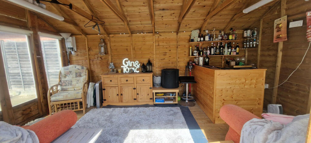 The property boasts a sizeable garden with a shed and a dedicated bar area, offering a versatile outdoor space. This is a positive feature that adds recreational value.