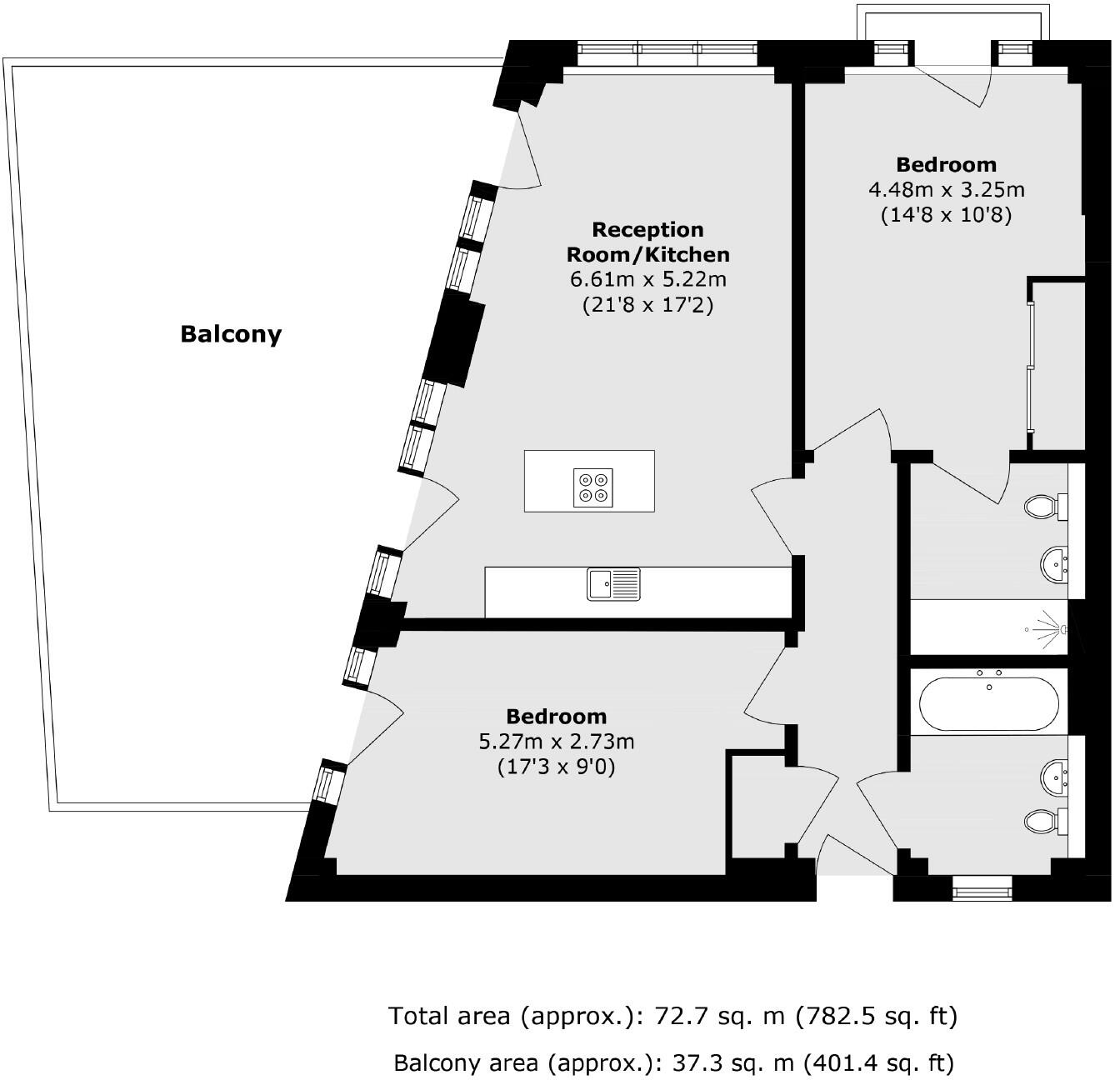 A modern two double bedroom, two bathroom apartment that comes with a large dual aspect roof terrace. This property offers open plan living room and kitchen with floor to ceiling windows and door for extra light. There is engineered wooden flooring throughout, two modern bathrooms, one of which i...