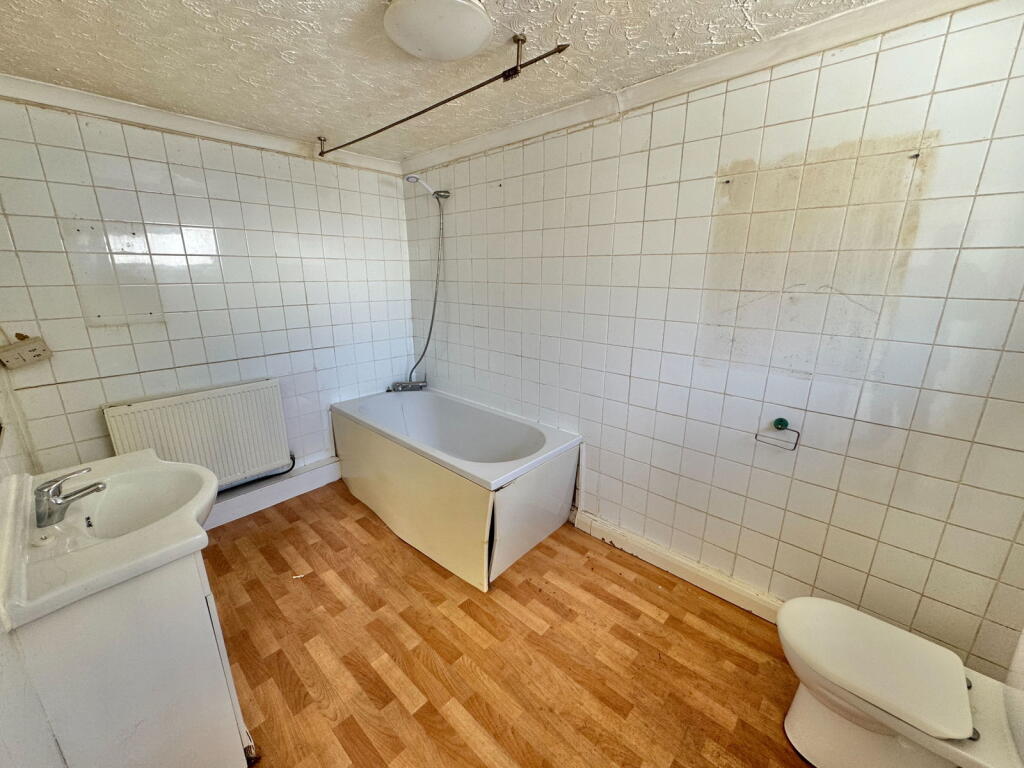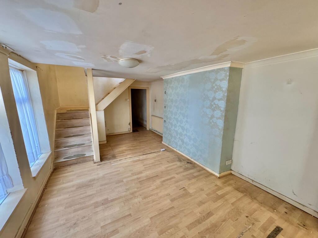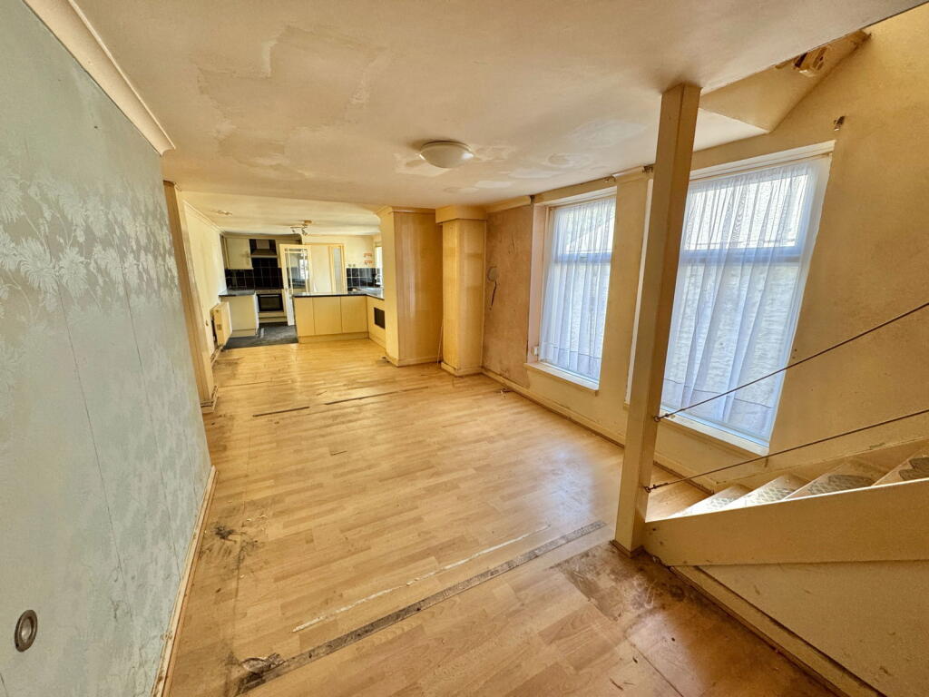 A very spacious ground-floor apartment requiring modernisation. An open-plan lounge/dining room, kitchen, bathroom, double bedroom, courtyard garden, gas-fired central heating, and PVCu double glazing.