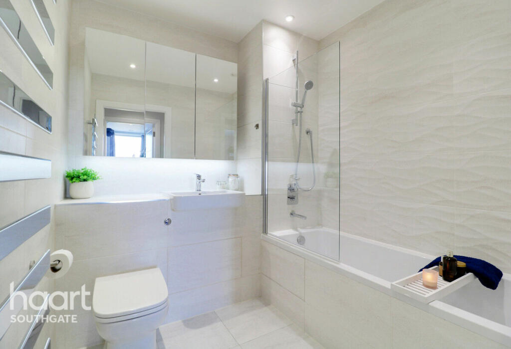 Based on the provided images, the property appears to be a modern, well-maintained apartment in a new development. The finishes look contemporary and high-quality. The apartment benefits from a balcony, offering outdoor space. The location in Southgate Green, Enfield, benefits from being close to several transportation links including New Southgate station (Govia Thameslink Railway). There are also a number of schools nearby, which may be attractive to families. However, the plot size is listed as 0.00 sqft, indicating a lack of private garden space. The list price of £475,000 seems relatively reasonable compared to similar properties in the area, although more information on the average price per square foot would be needed for a more definitive assessment. The lack of plot size information makes it difficult to definitively comment on the value for money aspect.