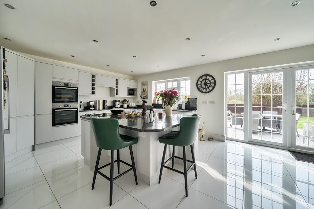 Exceptional 2011-built DETACHED CHALET with RURAL VIEWS. Meticulously updated. Grand entrance hall, DUAL ASPECT SITTING ROOM, modern kitchen, THREE EN-SUITE BEDROOMS, further ground floor bedroom. Gated entrance, DOUBLE GARAGE, westerly rear garden. EPC-C