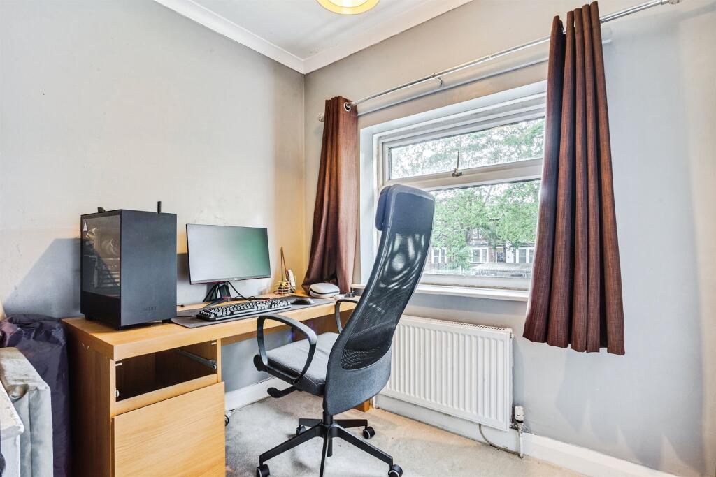 A six-bedroom mature semi set away from the roadside with a huge garden plot. Viewing advised.