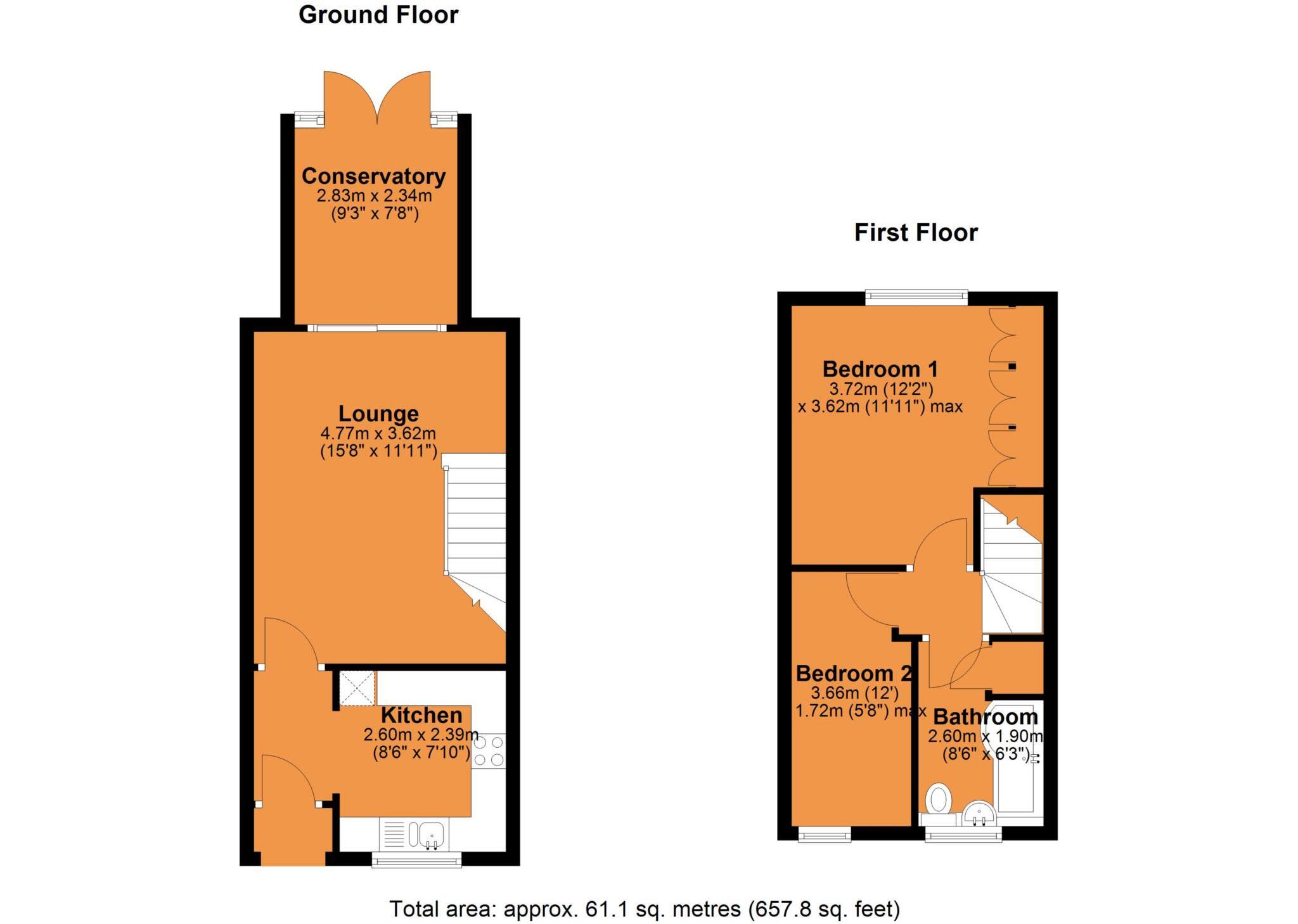 A modern two bedroom end of terraced home with a recent addition of a premium conservatory brick sides and French doors to a landscaped garden. Spacious lounge, kitchen with built in oven. Fitted wardrobes in bedroom one. Upvc double glazing and gas fired combo boiler. Off road parking for two cars.