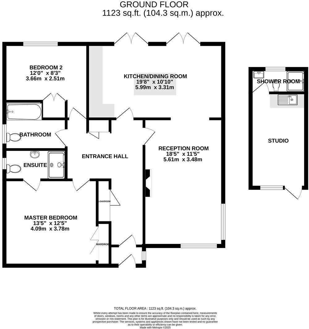 This detached bungalow is located in West Parley, Ferndown, Dorset. The property features three bedrooms and three bathrooms within 689 sqft. The garden is mostly laid to lawn and gravel. The property is located within close proximity to a number of schools and transportation links.