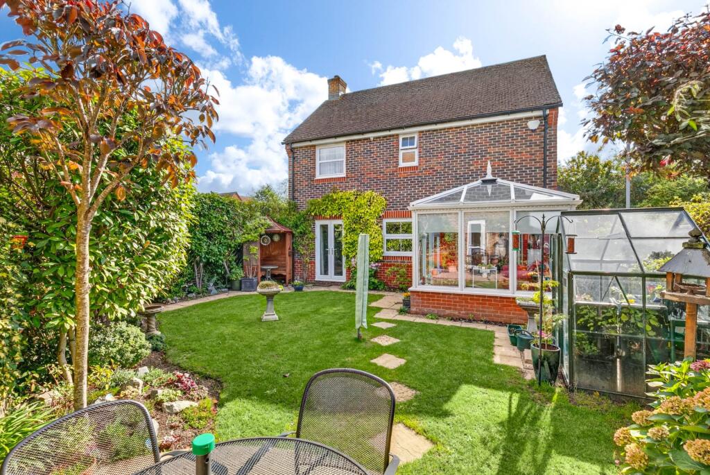 This is a detached house in Jennetts Park, Bracknell Forest, featuring four bedrooms and four bathrooms. The property includes a modern kitchen, a conservatory, and a well-maintained garden with a patio area and greenhouse. The house appears to be in good condition overall, although some rooms could benefit from modernisation. The location is convenient for families, with a primary school nearby and Bracknell train station within a reasonable distance. The asking price of £550,000 seems appropriate for the property’s size, location, and condition.