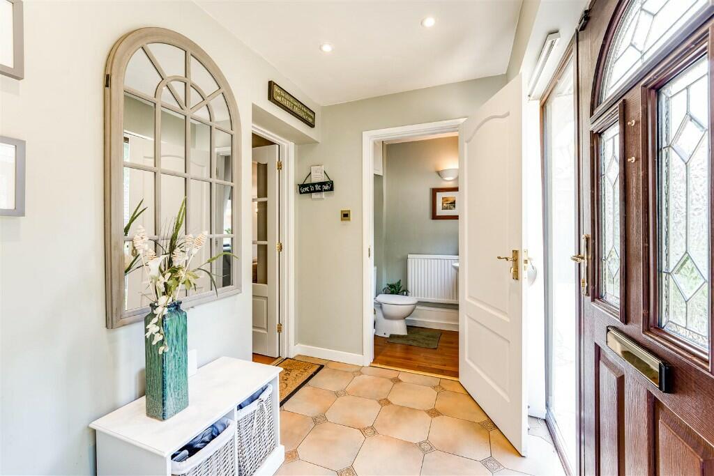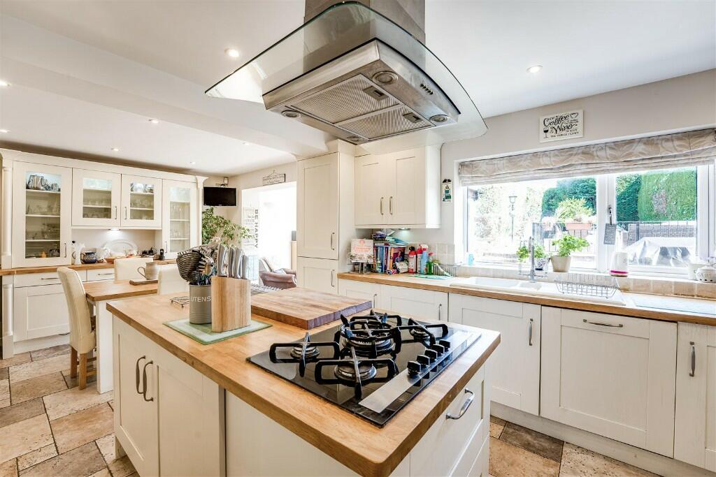 This private gated four bedroom detached property on Rockingham Road offers a triple plot with significant development potential. The house opens with an inviting entrance porch and cloakroom, providing a warm welcome for residents and guests. The spacious, well lit lounge is complemented by a