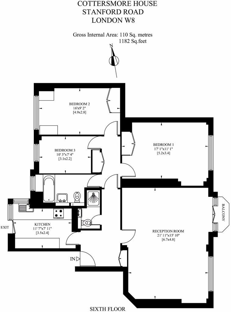 AN EXCEPTIONALLY BRIGHT THREE BEDROOM APARTMENT ON THE SIXTH FLOOR (WITH LIFT) OF A PURPOSE BUILT BLOCK SITUATED IN A POPULAR RESIDENTIAL AREA SOUTH OF KENSINGTON HIGH STREET