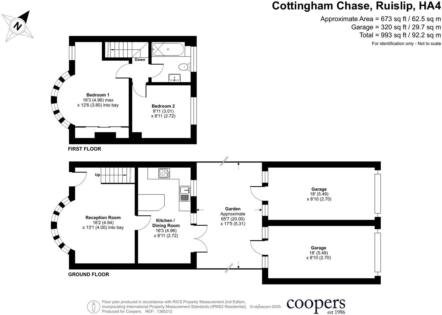This is a 2-bedroom terraced house located on Cottingham Chase, Ruislip. The property is listed for £525,000 by Coopers. It features one bathroom and has a square footage of 993 sqft, with a plot size of 673 sqft. The property appears to be in good condition, with a modern bathroom and well-maintained living spaces. It also benefits from a garden. The location is convenient, with nearby schools and transportation links. The price is reasonable considering the location, condition, and nearby property values.