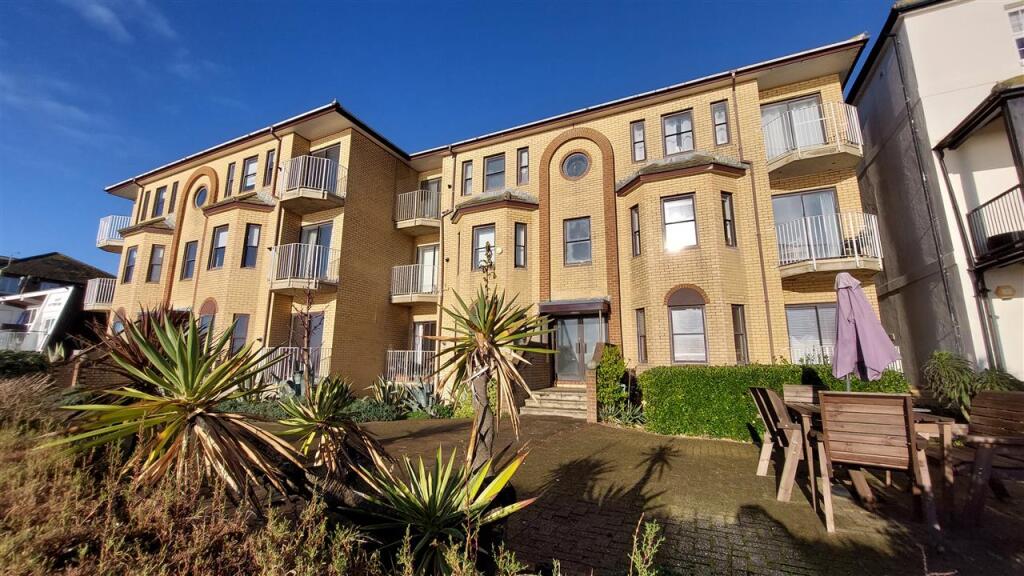 Once in a while... along comes a seafront flat, ground floor with a garage! Perfectly presented with 2 bedrooms, fully tiled shower room, modern quality kitchen, new windows, gas central heating and a delightful balcony to watch the tide roll in. With easy access and a pleasant walk back (cont.)
