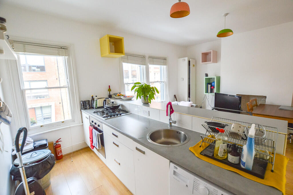 Bright and well-proportioned two double bedroom apartment arranged over the top two floors of a charming period conversion. Features include a modern open-plan kitchen/reception with breakfast bar, sleek bathroom, ample storage, and a peaceful location moments from Kilburn station and amenities.