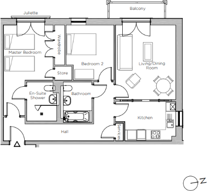 A fabulous two-bedroom apartment with double balcony.The apartment boasts an open plan kitchen/dining/living room with a private balcony, two double bedrooms with the main bedroom featuring a Juliet balcony and ensuite shower room. A further main bathroom is located off the spacious hallway.