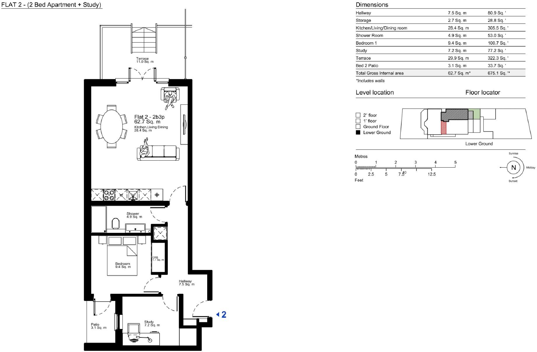 Apartment Two is one of the highlights of 14 Sutherland Place is a modern one bed and study apartment, spanning 675sq. Ft., and located on the lower ground floor. The apartment boasts an open-plan kitchen and living area, providing access to a large terrace and patio that enhances the overall liv...