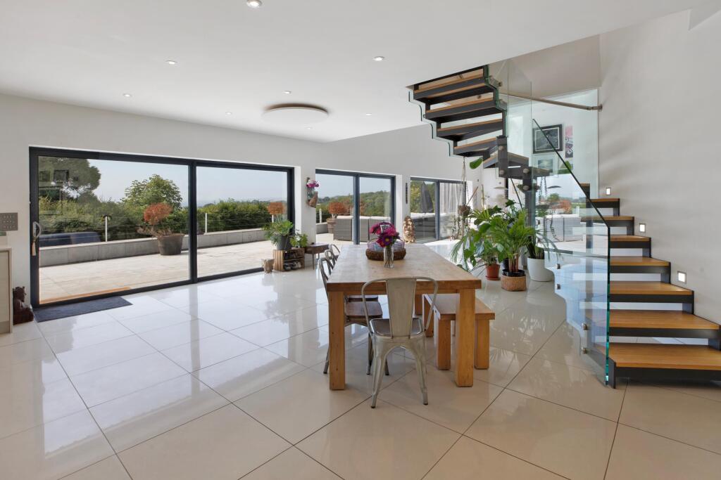 Sitting in an elevated position with commanding views over the neigbouring countryside, is this striking contemporary house. Set within 6 acres of landscaped grounds, offering superb open plan living. Sitting in an elevated position enjoying outstanding panoramic views over the neighbouring coun...