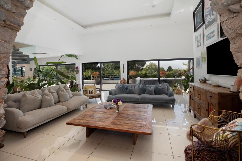 A substantial detached property located on Beech Trees Lane in Ipplepen, Newton Abbot. The house boasts 5 bedrooms and 3 bathrooms, with a generous living space of approximately 3,949 square feet.The property appears to be in excellent condition, with modern fixtures and fittings throughout. The images suggest a contemporary design with a well-maintained interior.The property has a large garden and a hot tub.The list price is £1,375,000. The average price per square foot in the area is £391. This property is listed at approximately £348 per square foot. Nearby sale prices range from £247,500 to £1,200,000, and the average house price in the area is £452,389.