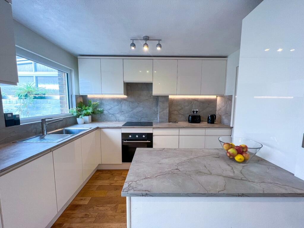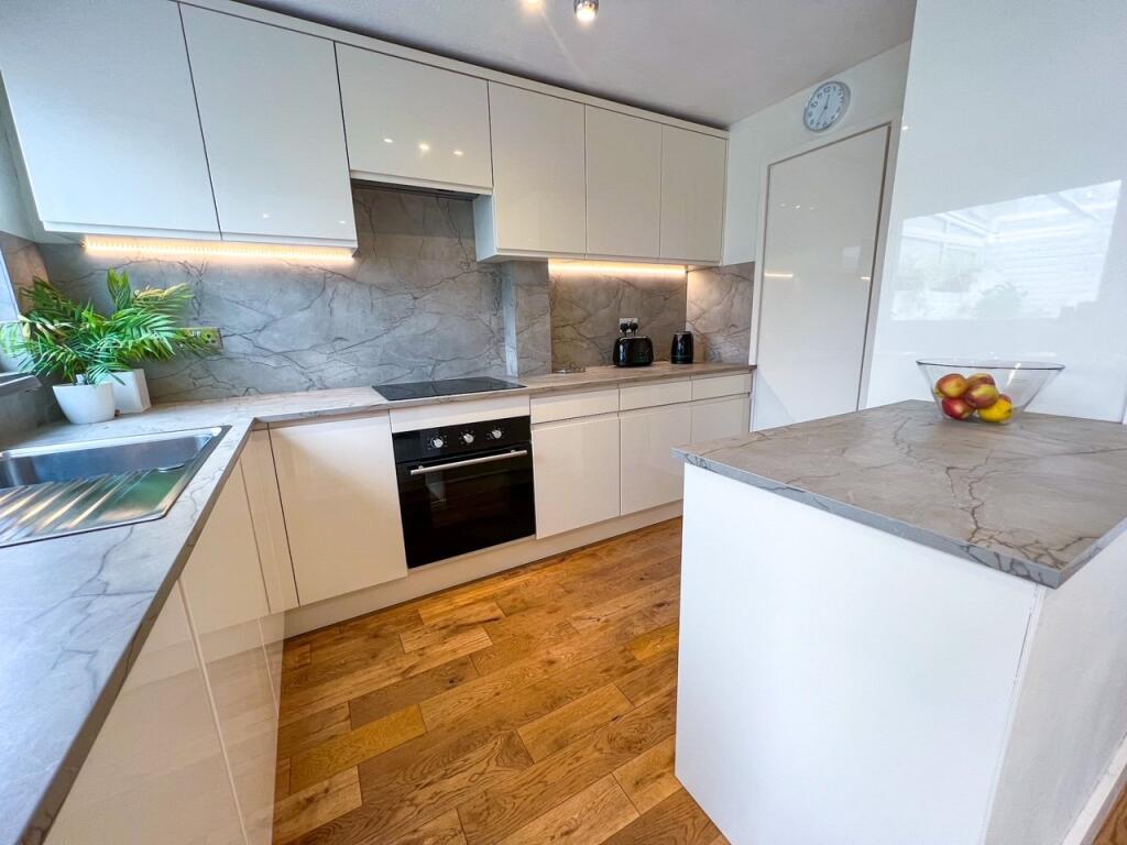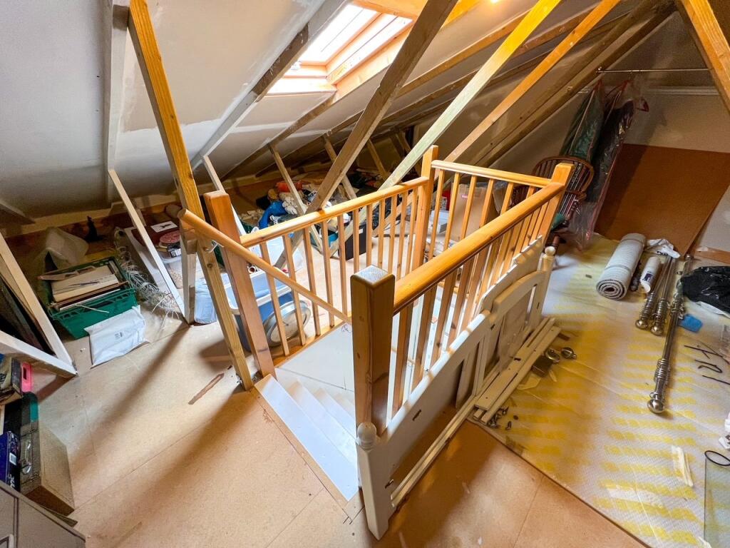 The interior photographs showcase a recently refurbished kitchen with modern cabinetry and fixtures. The living areas are spacious and well-lit, with hardwood flooring that flows throughout many of the rooms. While additional photographs of the bathrooms would have been beneficial, the one shown suggests a comparable standard to the kitchen. The property includes a garden, although relatively small in size, offering an outside space for relaxation and potential landscaping opportunities. The overall condition of the property appears very good; however, the unfinished loft space suggests some potential for further development and personalization.