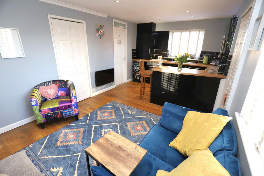 This is a one-bedroom apartment located in Bury, Greater Manchester. The interior is modern and well-maintained, featuring a combined living and kitchen area, one bathroom, and one bedroom. While the property offers limited land, it is situated in a location with access to schools and transportation. The asking price of £99,995 appears reasonable compared to the local market averages, making it a potentially attractive option for first-time buyers or investors.