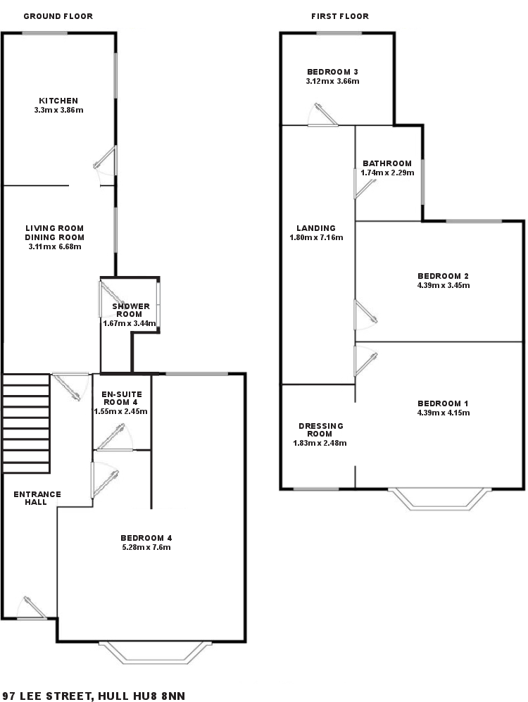 The property is a 4 bedroom end of terrace house located on Lee Street, Hull, East Riding of Yorkshire. It has 3 bathrooms and is 1,608.13 square feet. The list price is £170,000.