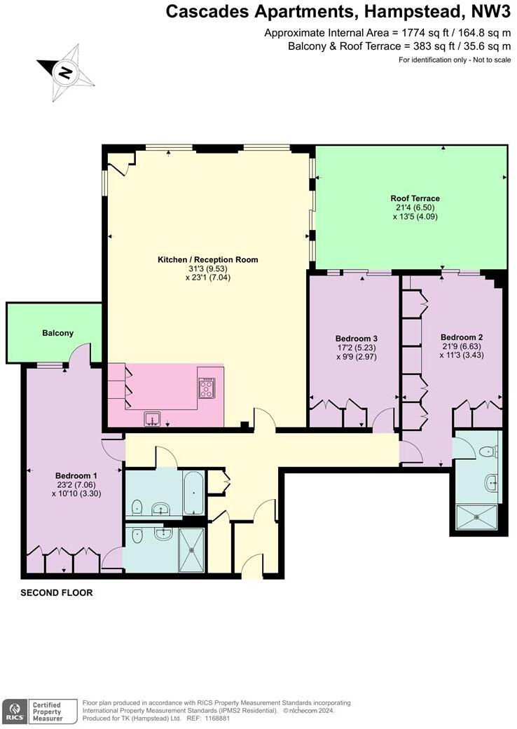 This stunning and spacious apartment boasts 1,774 sq ft of lateral living space on the 2nd floor, uniquely offering a tranquil aspect entirely overlooking greenery, with enviable private outside space accessible from both the living areas and each of the three double bedrooms. This extre...