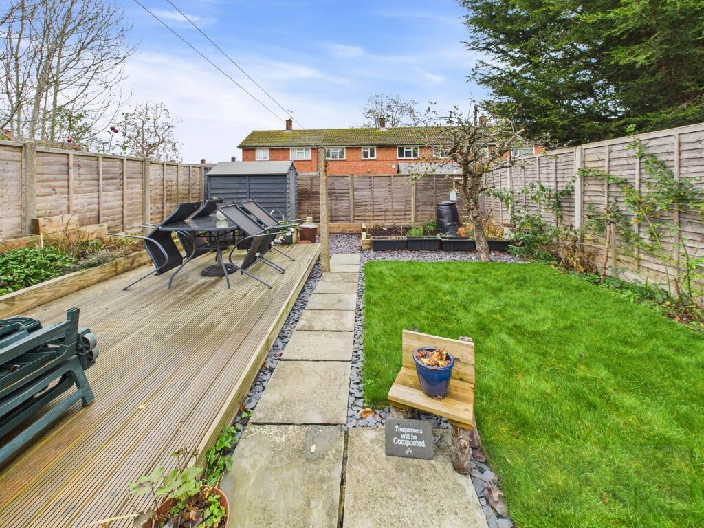Warm & inviting 3-bed terraced home in a quiet cul-de-sac. Dual aspect lounge, ample kitchen, solar panels for efficiency. Prime Three Bridges location near station & town centre. Ideal family dwelling.