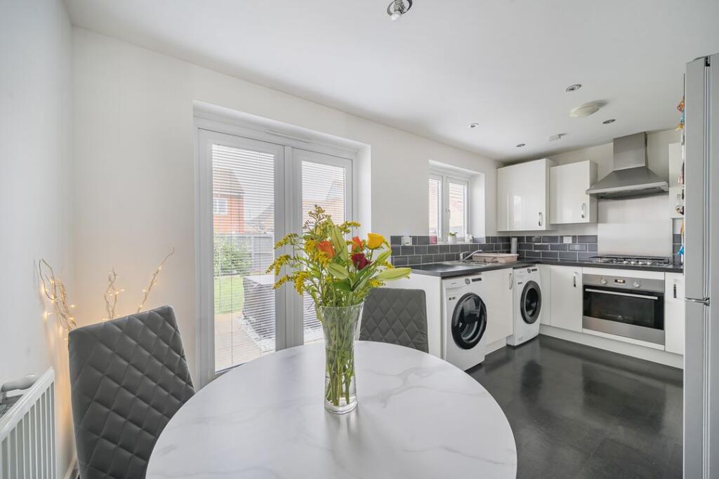 This is a modern semi-detached property in Purton, Wiltshire. The house has three bedrooms and two bathrooms. The property benefits from a garden. The interior appears to be well-maintained and modern. The property is located near schools and has good transport links. The asking price of £201,000 seems reasonable for the area and the condition of the property.