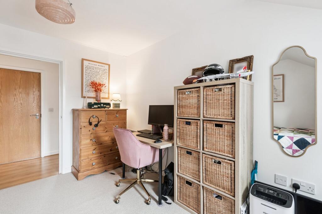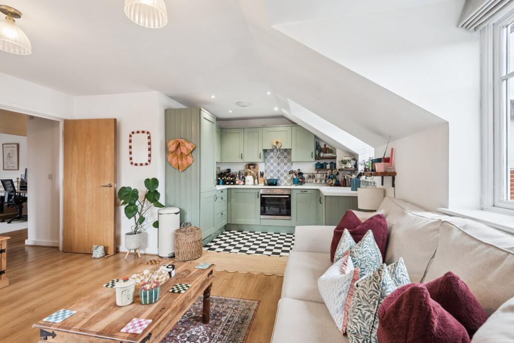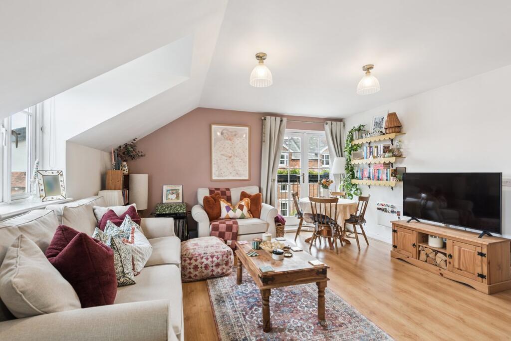 A stylish and light-filled top floor apartment in the heart of Hitchin, boasting a refitted kitchen, Juliet balcony, two generous bedrooms and secure underground parking – all just moments from the town centre and train station.