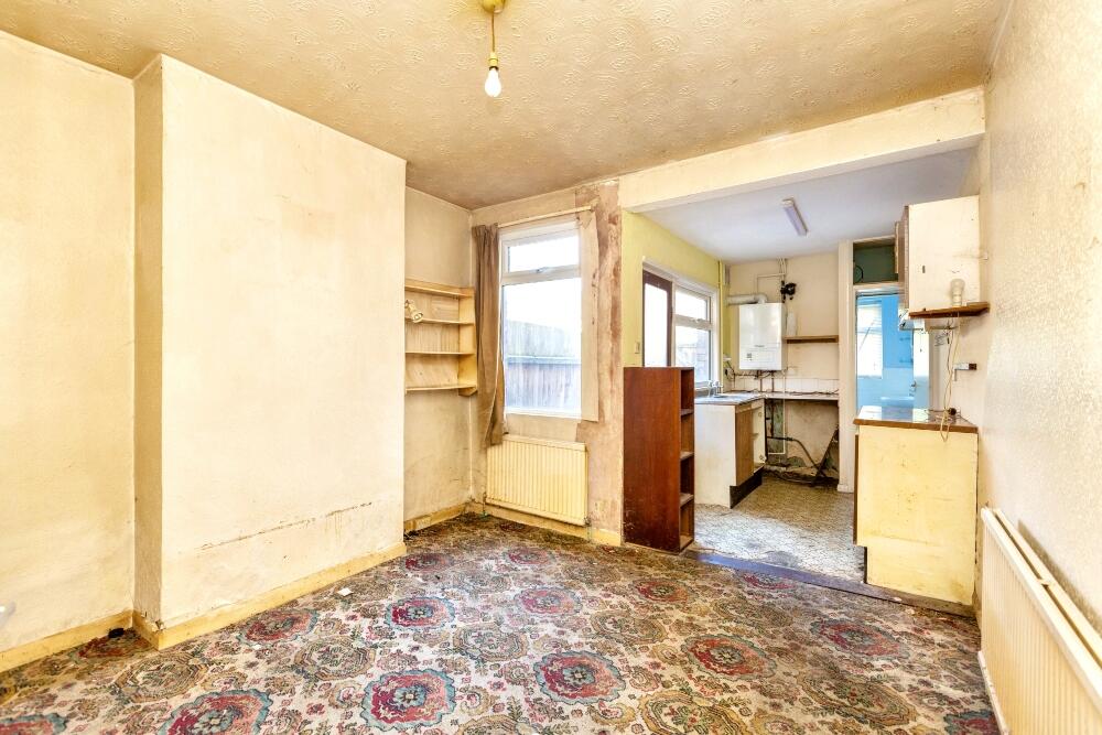 This property is a two-bedroom terraced house located on Alfred Street in Dunstable, Bedfordshire. The property is in need of significant renovation, as evidenced by the images provided. The interior features dated fixtures, worn carpets and walls, and requires a complete modernisation. The exterior, while showing a small garden, also appears to be in need of attention. The location is convenient, with nearby schools and transportation links. However, the property is significantly below the average price per square foot for the area, suggesting it may be undervalued due to its condition. Further investigation is recommended to assess the extent of necessary repairs and potential costs involved.