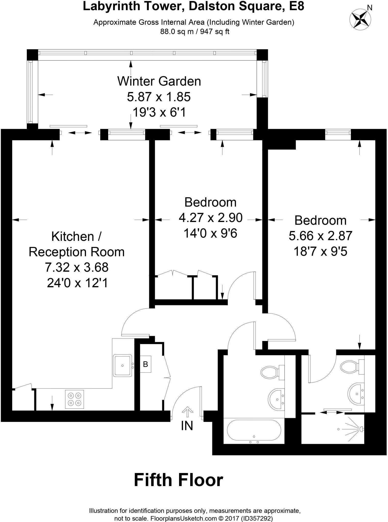 This fantastic two-bedroom, two-bathroom apartment is located on the fifth floor of the sought-after Labyrinth Tower, right in the heart of Dalston.