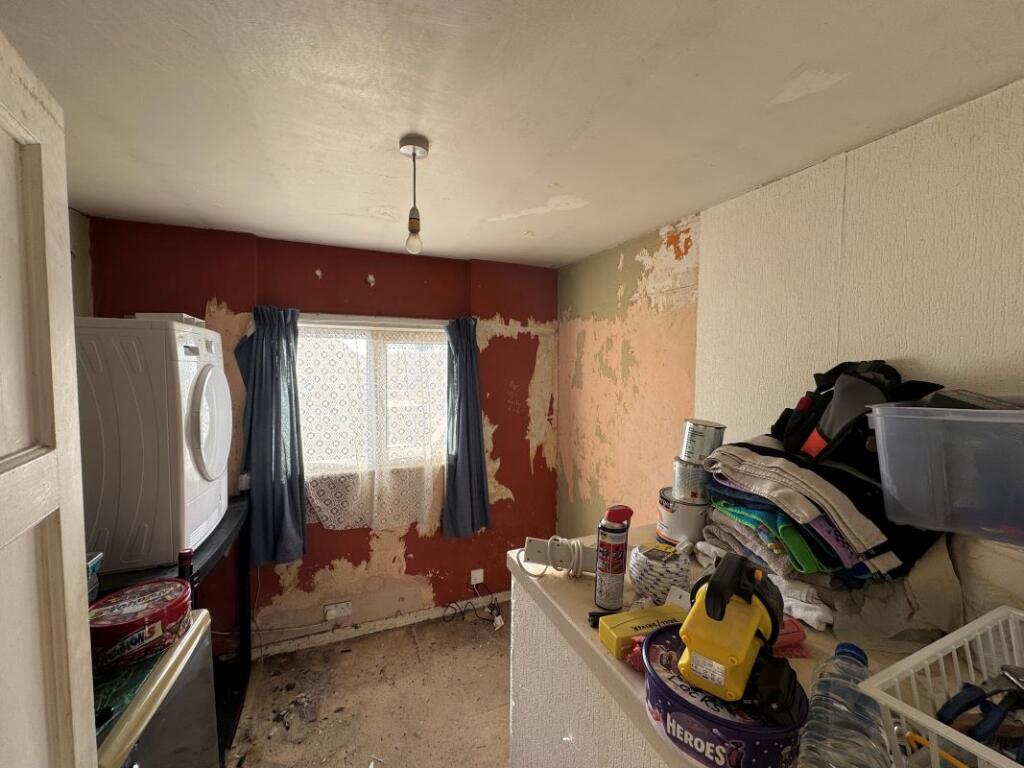 This is a three-bedroom terraced house in Little Sutton, Ellesmere Port. The property requires extensive renovation throughout, as evidenced by the poor condition of the interior. The house has front and back gardens that need attention. The location offers reasonable access to schools and transportation. The asking price of £60,000 is considerably below the average for the area, reflecting the property’s condition and offering an opportunity for significant value addition through renovation.