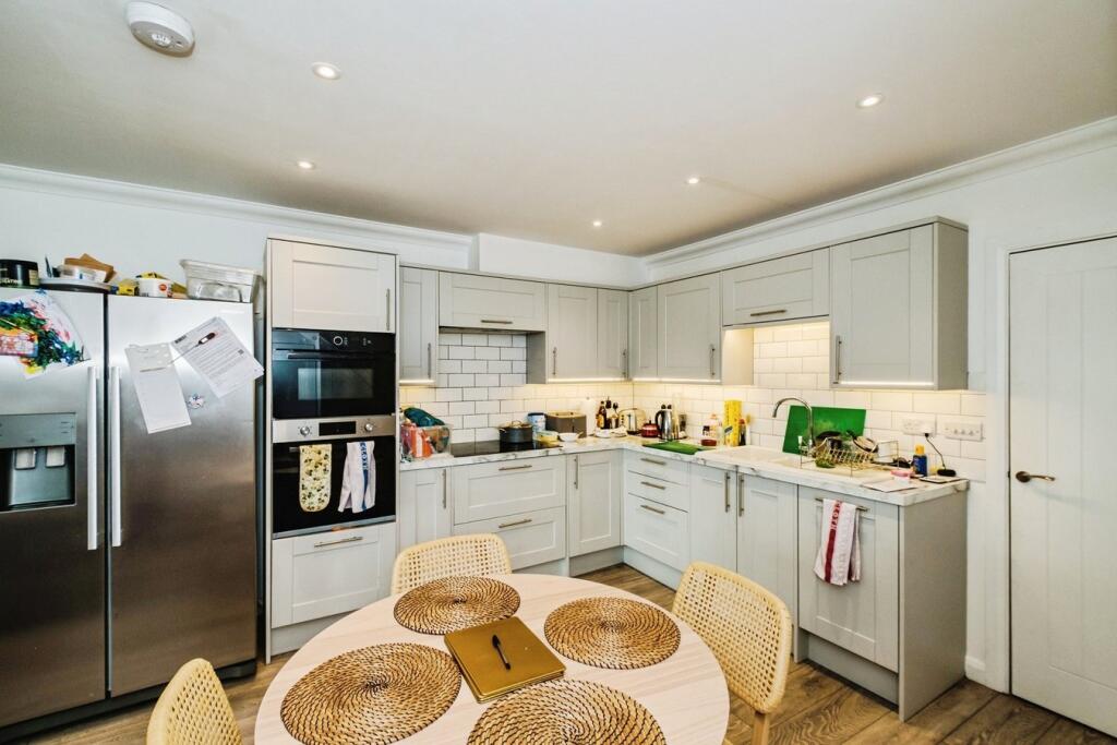 This is a three-bedroom maisonette located on Pier Road in Littlehampton. The property offers 1,402.54 sqft of living space and includes two bathrooms. The interior features a modern kitchen and updated bathrooms, but there are signs of wear and tear, such as water stains on the ceilings. The property benefits from a balcony. The location is convenient, with proximity to the River Arun, local amenities, schools, and transportation options. The list price of £450,000 is higher than the average price in the area, considering the condition and lack of private outdoor space.