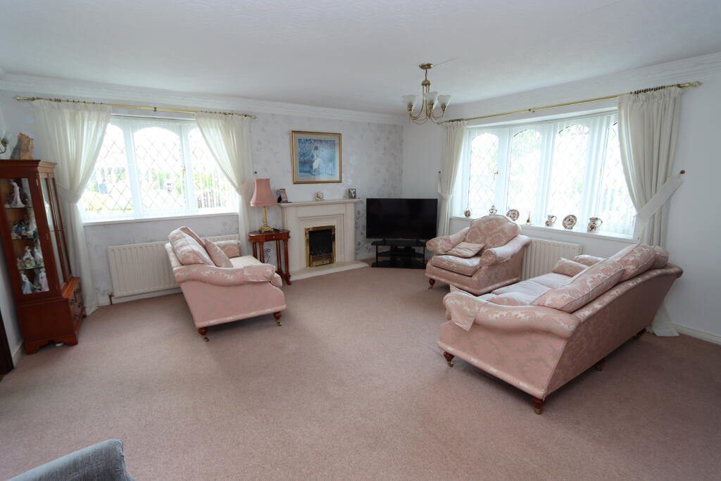 SUPERBLY SITUATED & GENEROUSLY PROPORTIONED STONE-FACED, 3 BEDROOMED, DOUBLE FRONTED DETACHED BUNGALOW WITH CONSERVATORY.